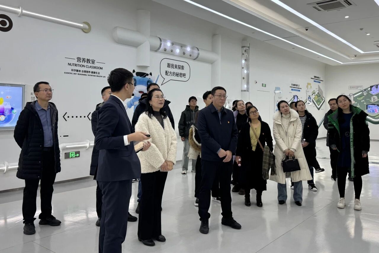 为深入学习贯彻党的二十届四中全会精神,赋能兽医学科高质量发展,11月18日下午2:00,校党委组织部党支部、兽医学院教工临床兽医学党支部、本科生第三党支部共赴伊利现代智慧健康谷,联合开展走进伊利现代智慧健康谷——“1+2”党支部共建主题党日活动。校党委委员、组织部部长栾煜,校党委组织部副部长孙玉伟、副部长李万春,兽医学院党委书记吴玉红、副书记王阿荣,兽医学院教工临床兽医学党支部书记刘芳、本科生第三党支部书记郝凌魁及各支部成员共同参观了伊利现代智慧健康谷。