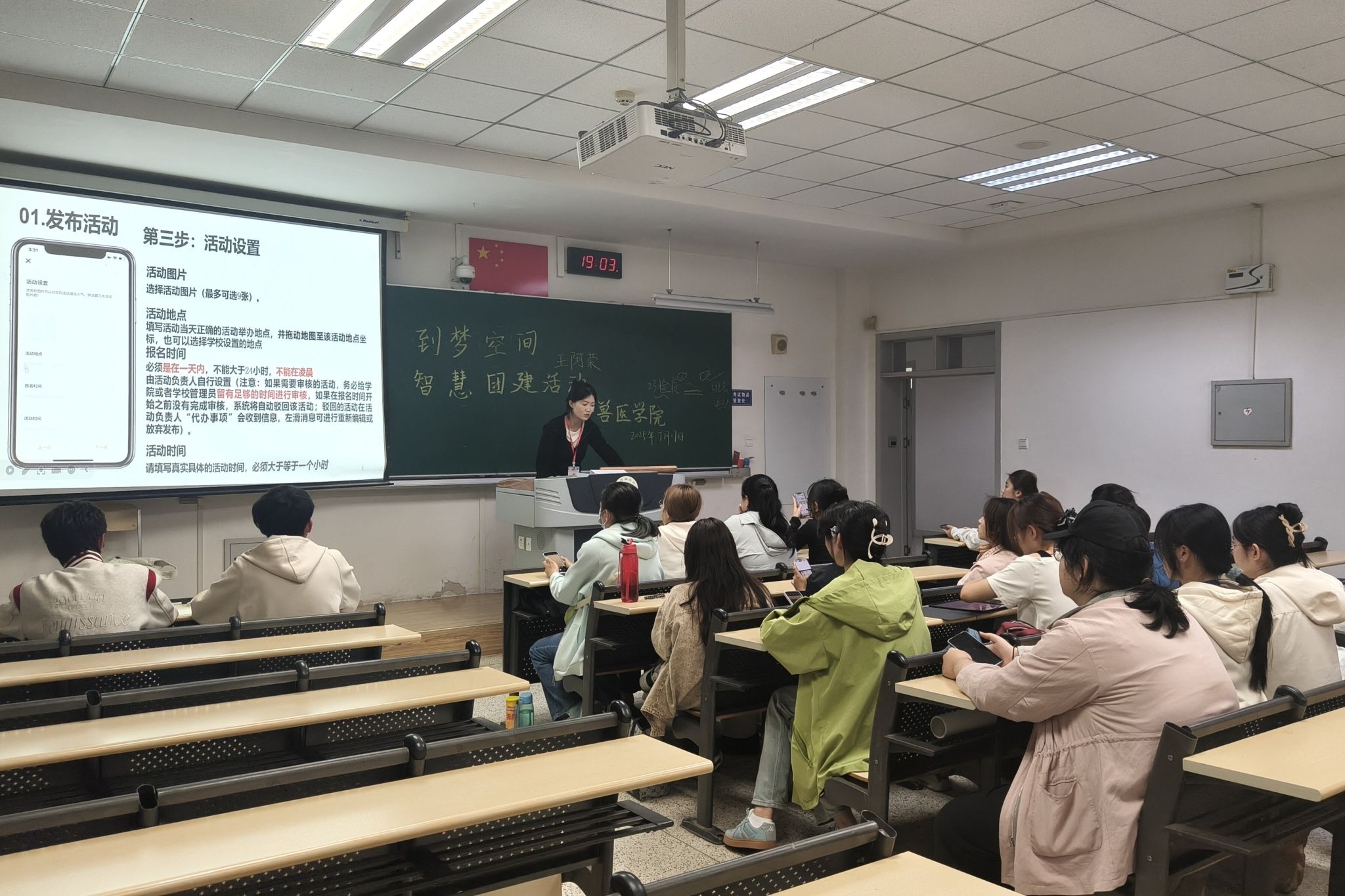 接着,由兽医学院团委学生会实践部部员张炀向大家介绍如何利用到梦空间进行第二课堂的活动发布以及学分发放等操作。