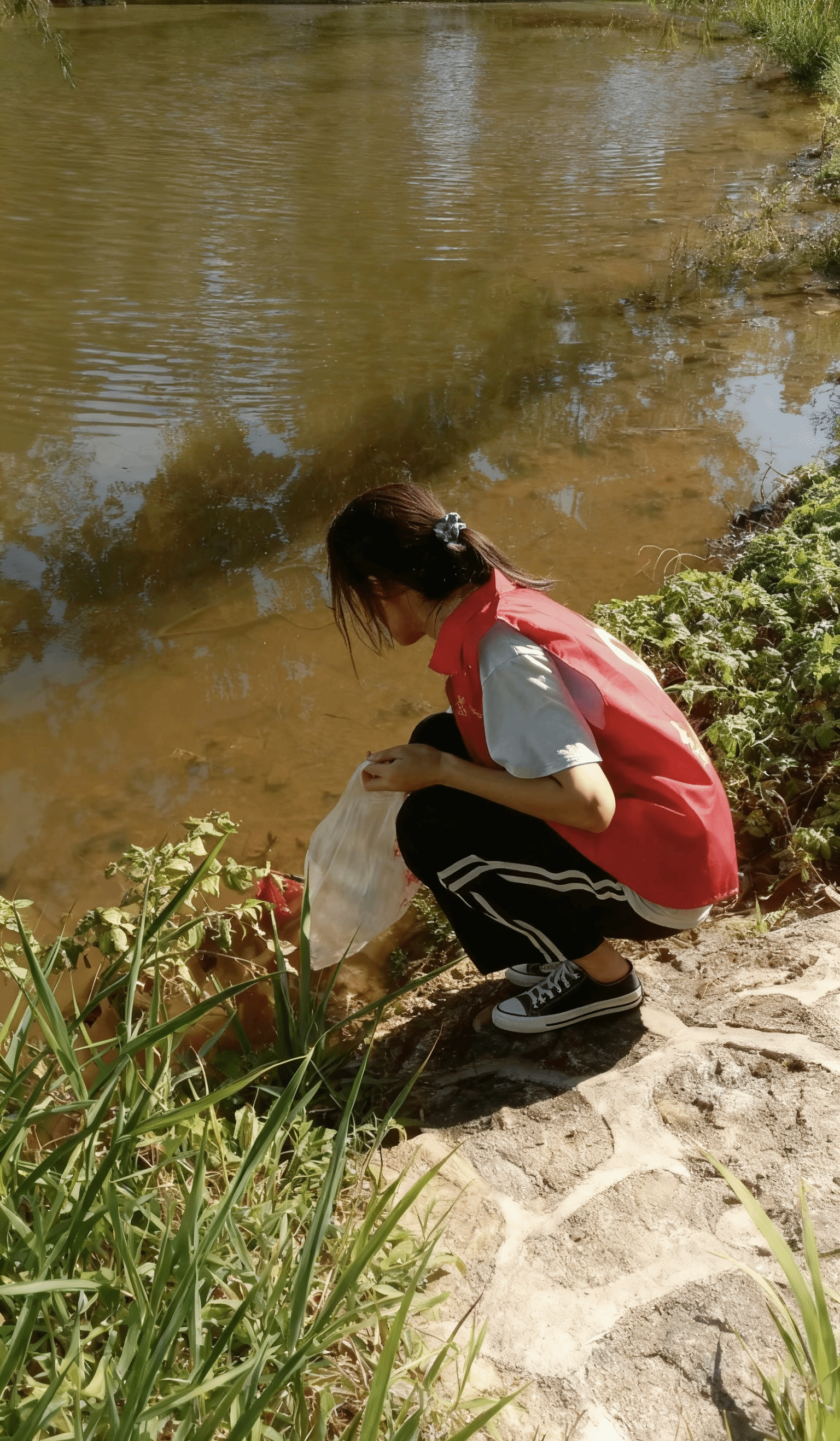 娜木同学正在进行河道卫生清理工作 兽医学院 摄