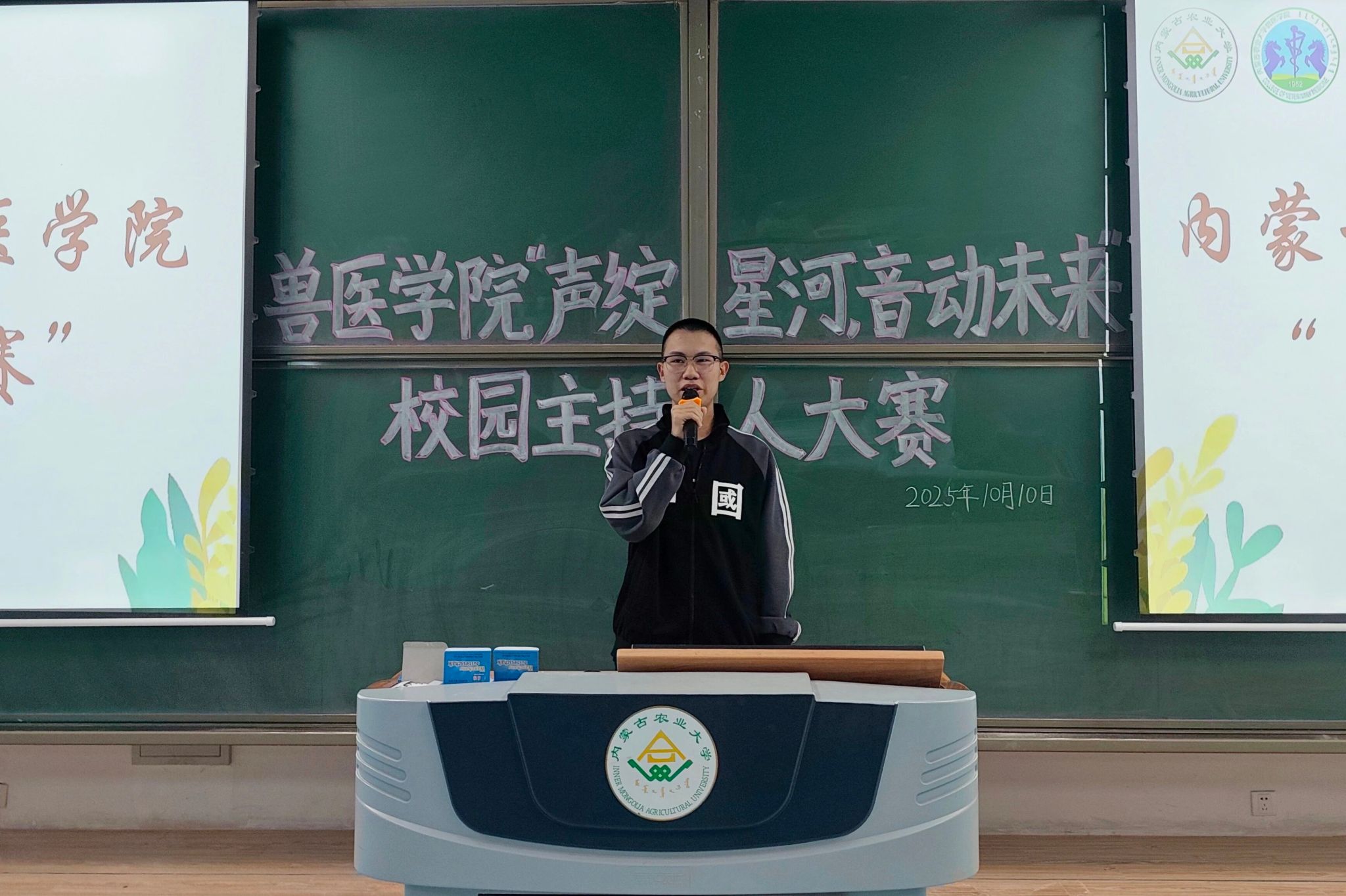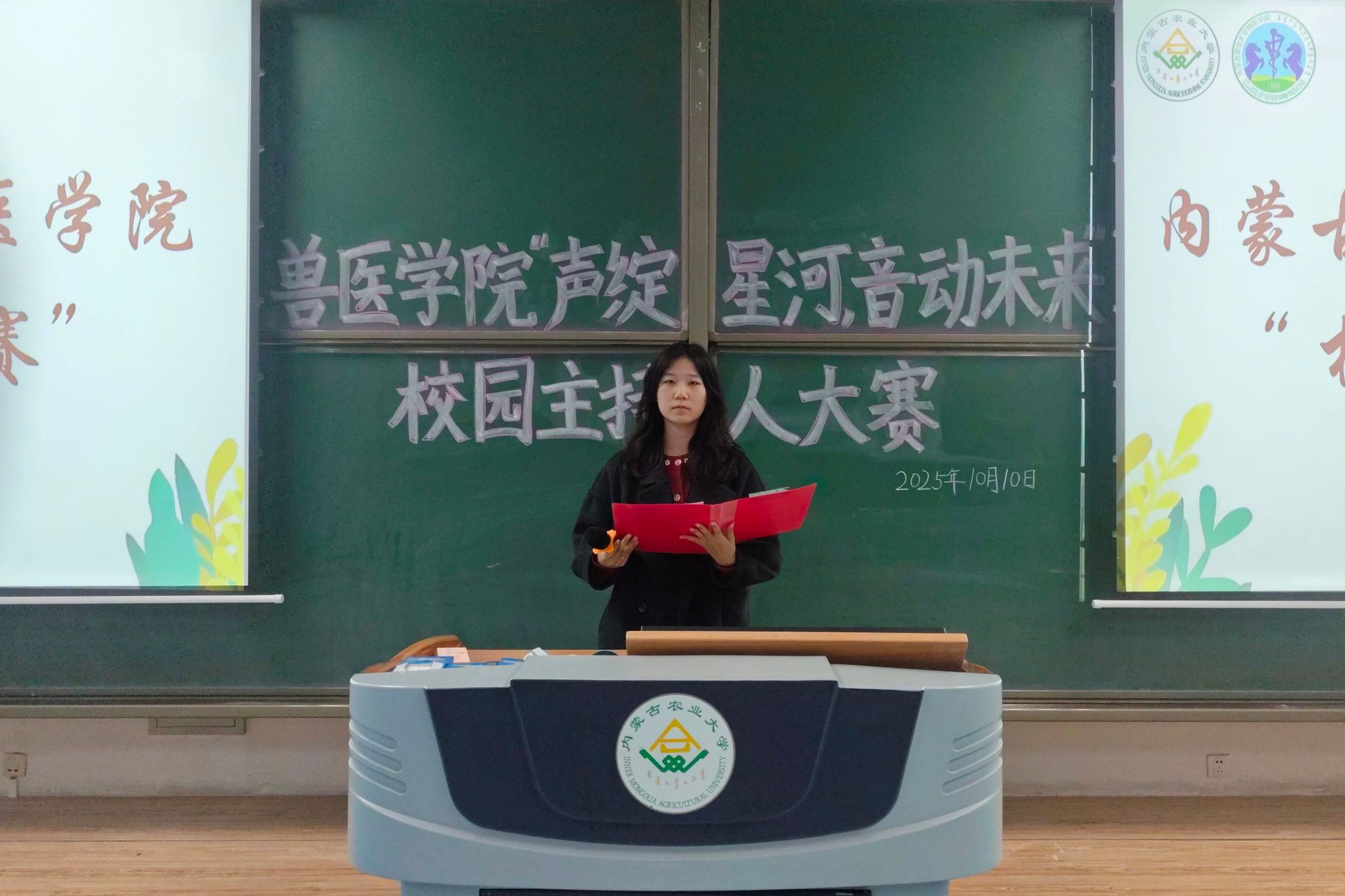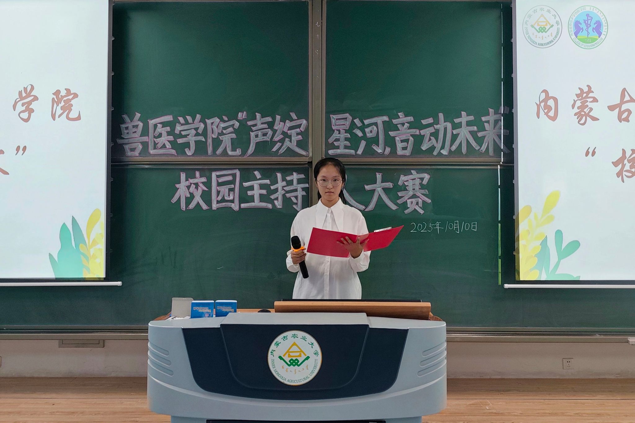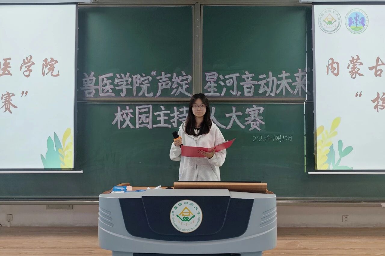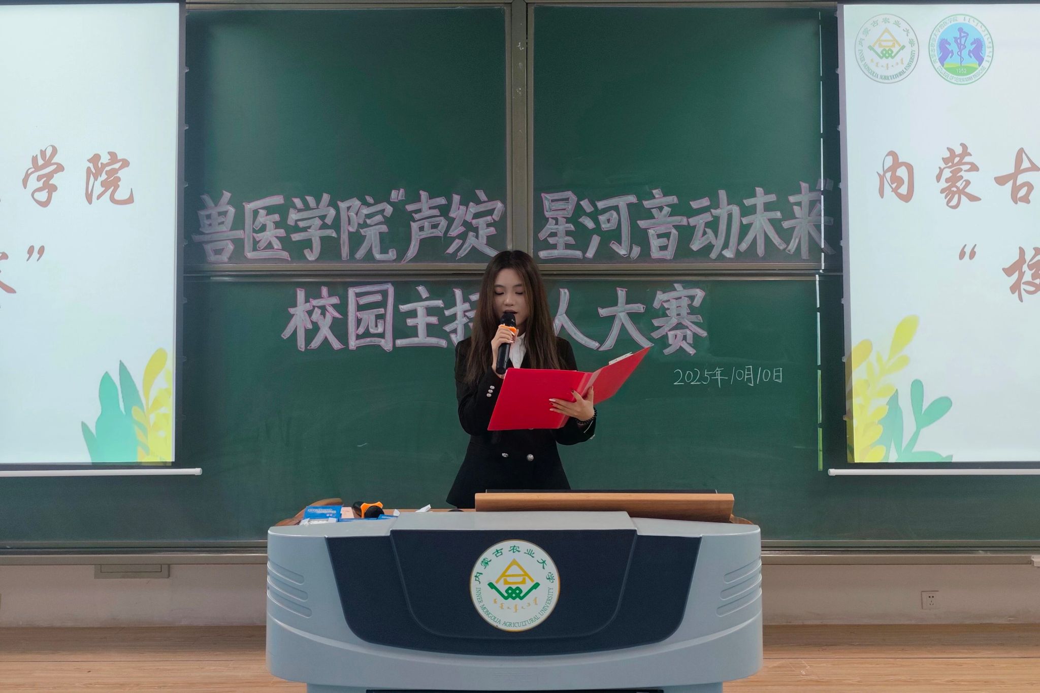 10月10日晚7:00,内蒙古农业大学兽医学院“声绽星河,音动未来”校园主持人大赛初赛在南教116教室举行。兽医学院第十六届团委学生会主席团成员担任评委,学习部部长武垣彤主持比赛。