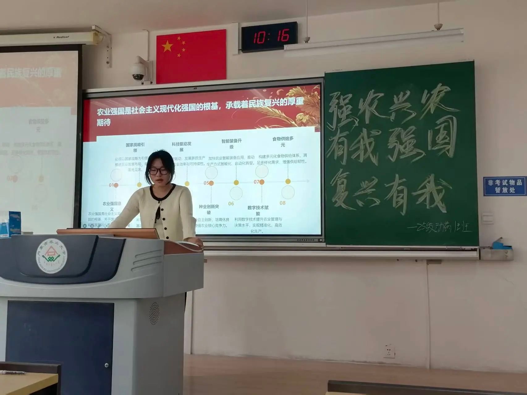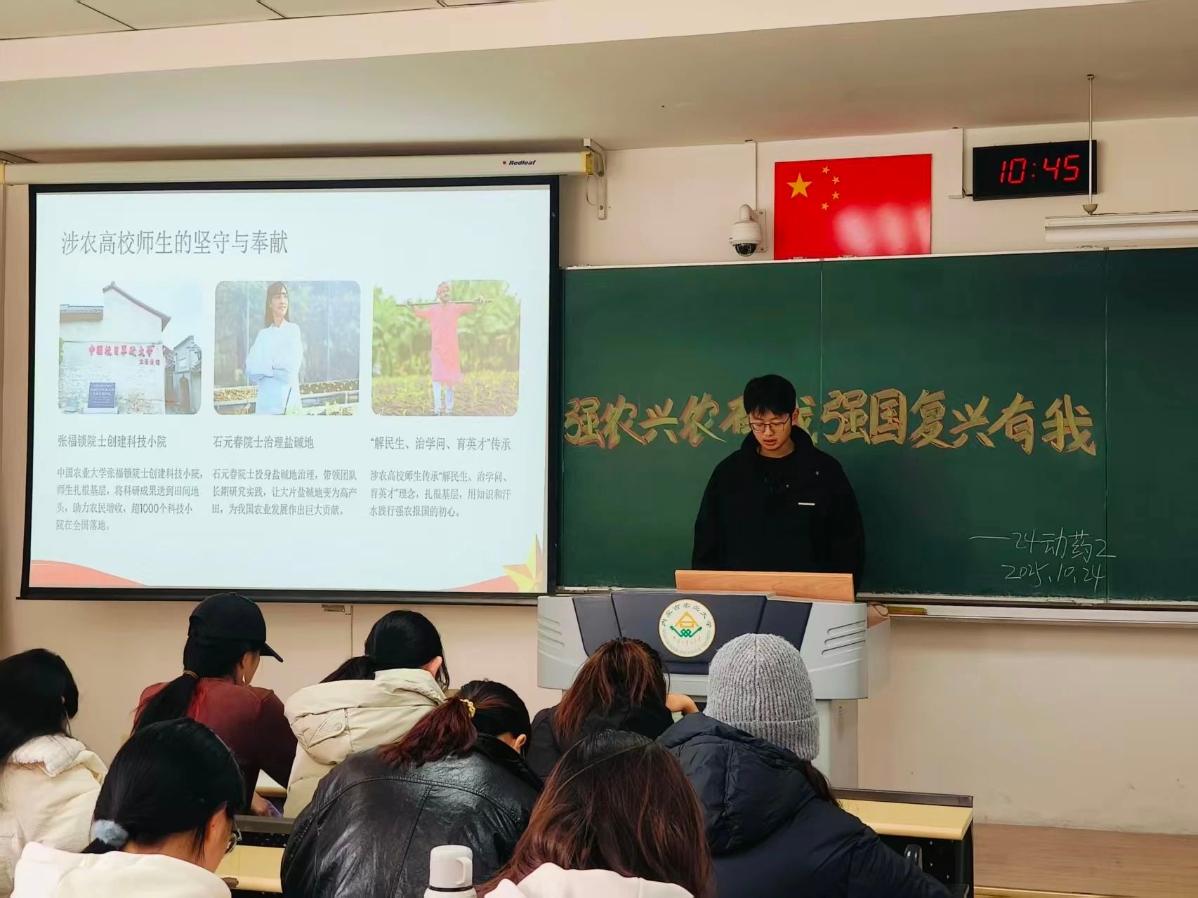 22动医3班通过细致讲解与集体学习,进一步深化了思想认识,激发了爱国热情与强农使命。有效凝聚支部力量,激励团员青年在实践中求真知、长才干,将“强农兴农有我,强国复兴有我”的誓言付诸行动。