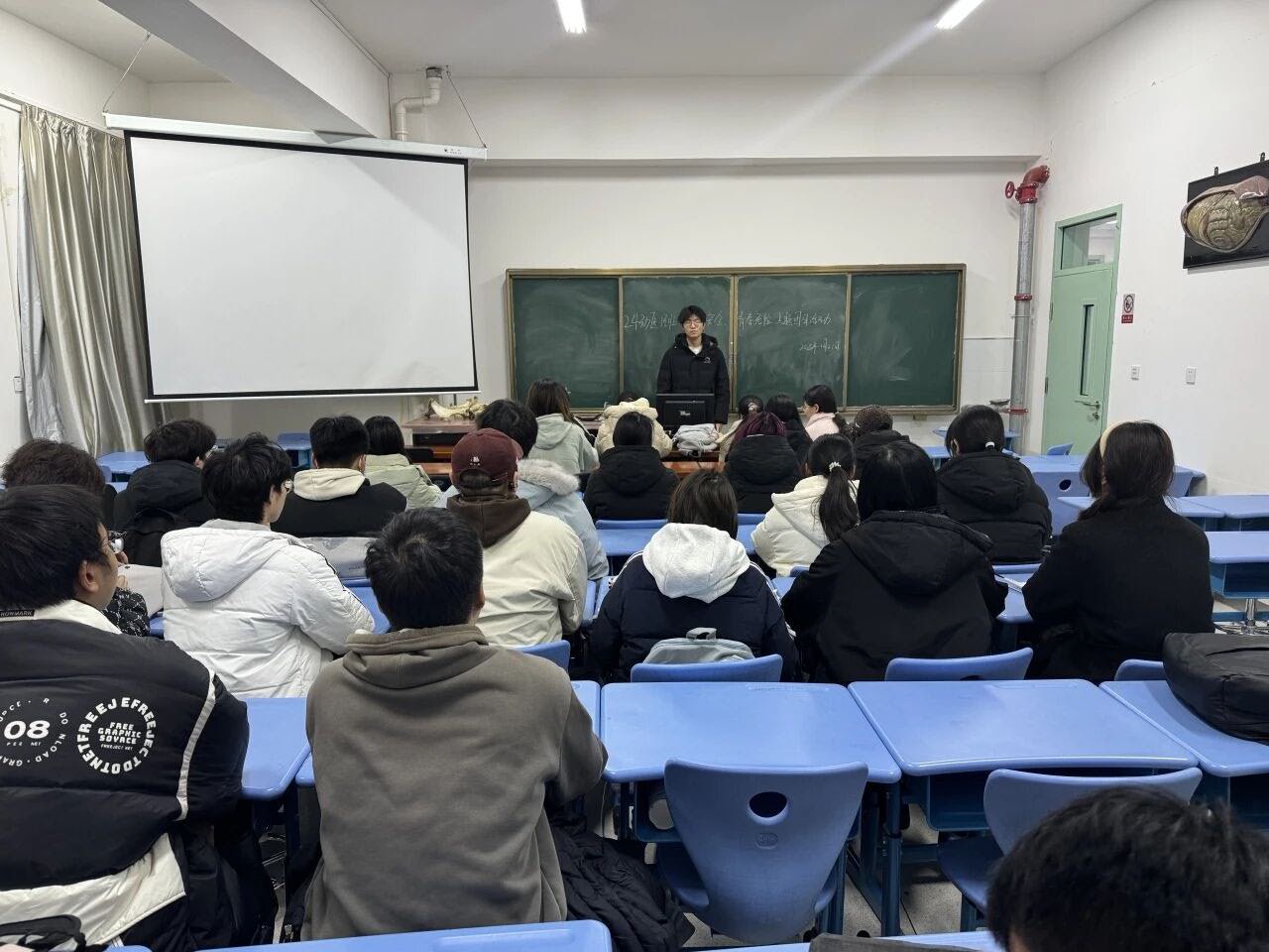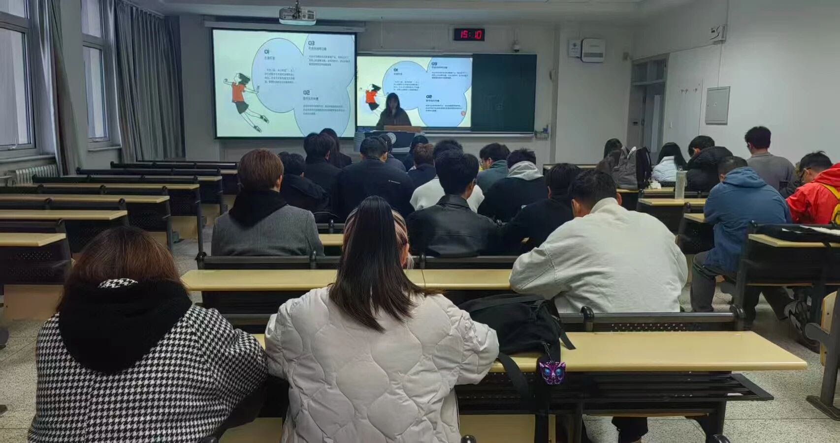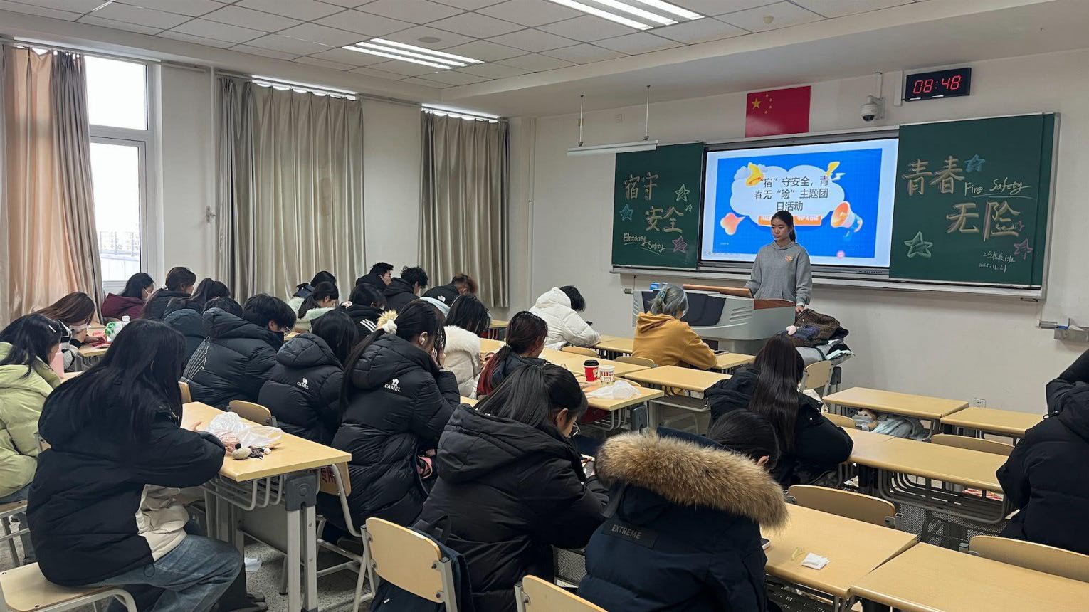 24动医1(卓越)班在团支书的组织下,结合违规电器使用案例、火灾现场图片等素材,直观呈现了宿舍安全隐患可能造成的严重后果,重点讲解了大功率电器使用规范、灭火器操作步骤、宿舍防盗措施及个人信息保护等内容,切实提升了同学们的宿舍安全防范意识和应急处置水平。