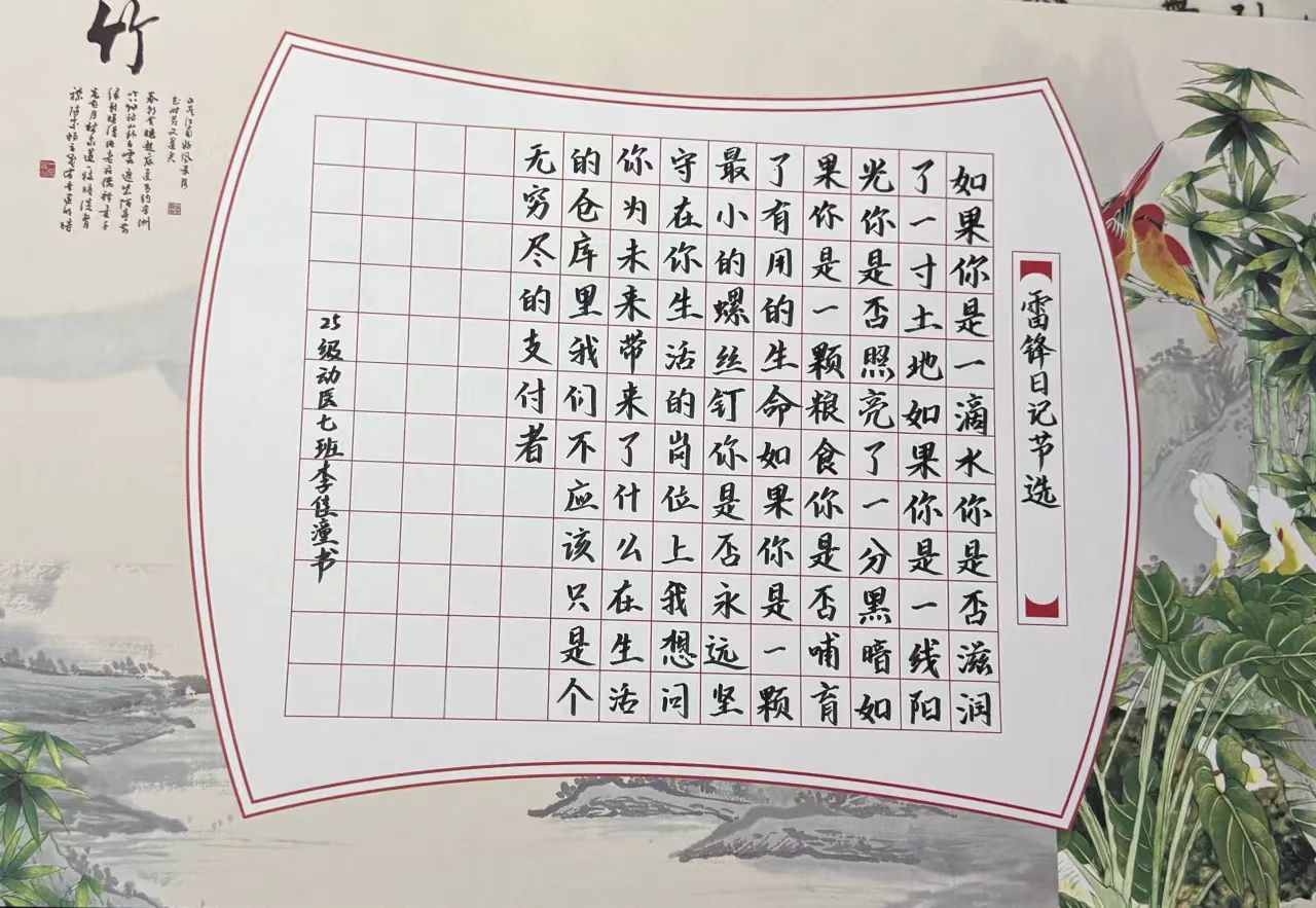微光成炬,可照山河;青春向党,不负韶华。雷锋精神是永不熄灭的火炬,志愿服务是青春最美的底色。正如雷锋所说:“人的生命是有限的,可是,为人民服务是无限的。”我们定能在建功“十五五”的征程中,书写属于新时代青年的精彩答卷,让青春在奉献中绽放出最绚丽的光彩!