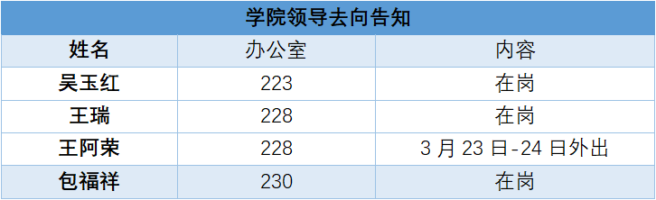 2026年3月23日~3月27日学院领导去向告知