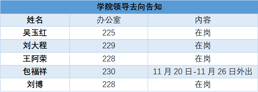 2025年11月17日~11月21日学院领导去向告知