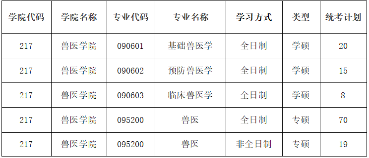 3.学术学位类考生的调剂必须满足原报考一志愿专业在兽医学学科(学科代码为0906)和畜牧学学科(学科代码为0905)范围内。专业学位类考生调剂满足原报考一志愿专业为兽医专业(专业代码为0952),申请调剂考生本科专业为动物医学、动物药学、动植物检疫、动物科学的优先调剂。