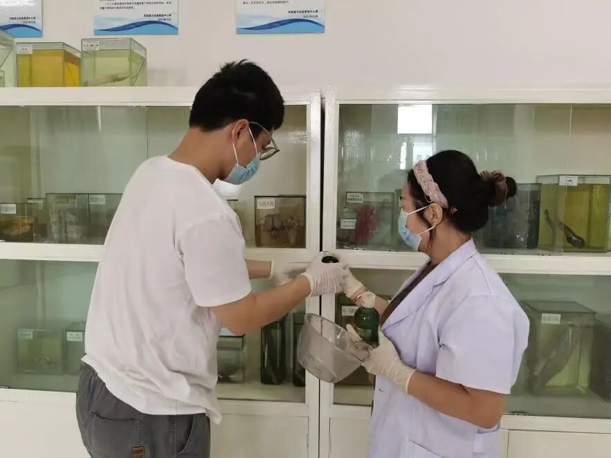 本次专项工作聚焦教学资源的管理,以“分工明确、环环相扣”的思路有序推进。环境优化是保障标本长期保存与教学使用的关键。包花尔老师全程统筹协调,开展针对兽医楼610、611、612三个大型标本室的深度清洁与维护工作。学生团队主动承担起陈列架擦拭、地面清扫、通风系统检查等任务,师生分工协作,对标本室进行全方位“焕新”。与此同时,浸渍标本维护工作同步展开,同学们逐一对保存液不足的标本进行残液倾倒、冲洗与更换,确保每一份浸渍标本都能保持良好状态,延长其教学使用周期。