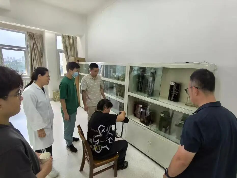 作为本次工作的“重头戏”,冻干标本数字化采集环节备受关注。为确保数字化资源的专业性与高质量,团队成员将冻干标本集中转移至六楼走廊,将走廊设为“拍摄棚”,教研组还特别邀请专业人员负责技术支持。拍摄过程中,王彩云老师和杨彬老师全程担任“专业指挥”,力求每一张照片都能精准展现标本的解剖构造特征;韩宝祥老师则负责现场协调,保障流程顺畅。尽管待拍摄的冻干标本数量多、任务重,但在师生的紧密配合与高效协作下,整个数据采集工作进展顺利。