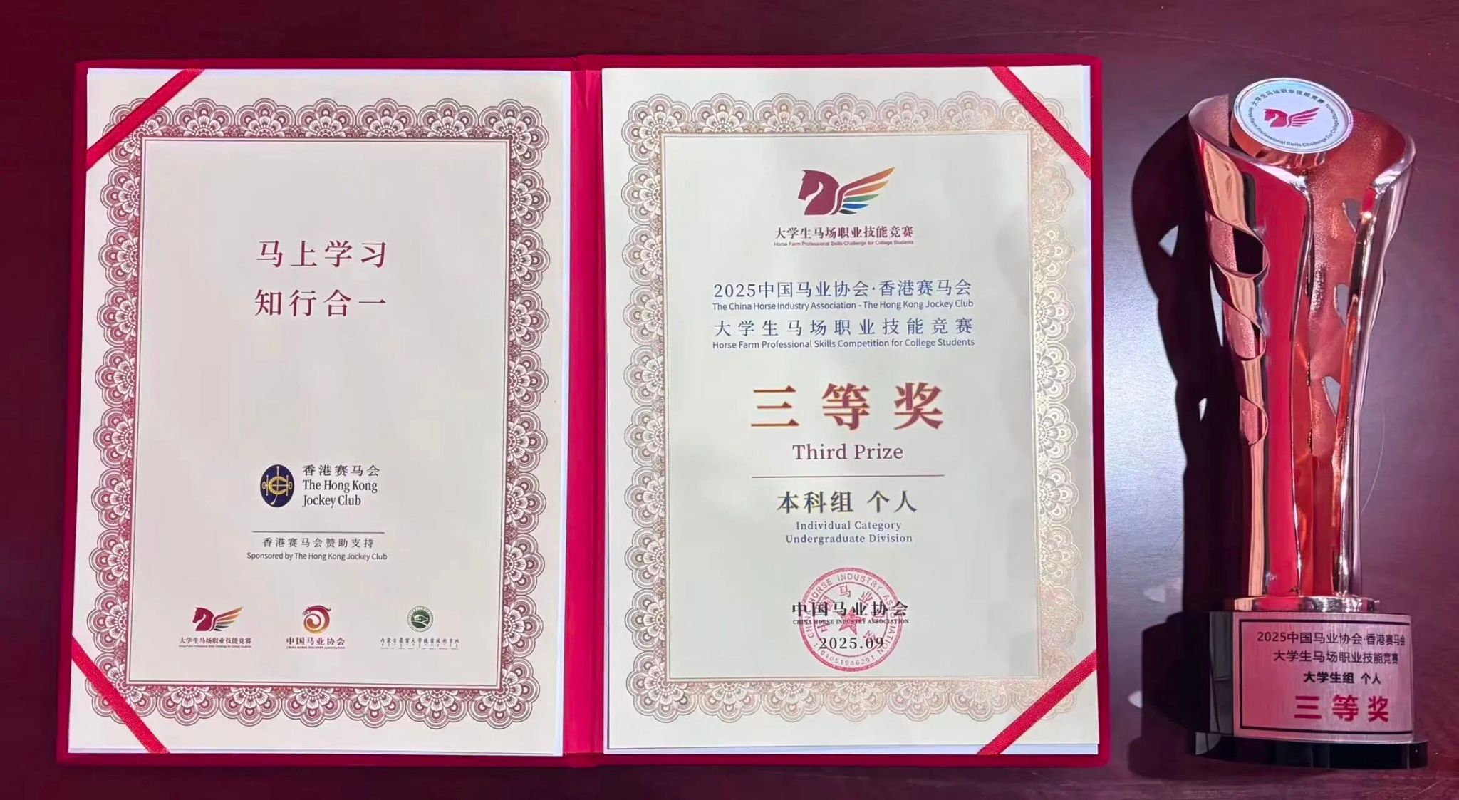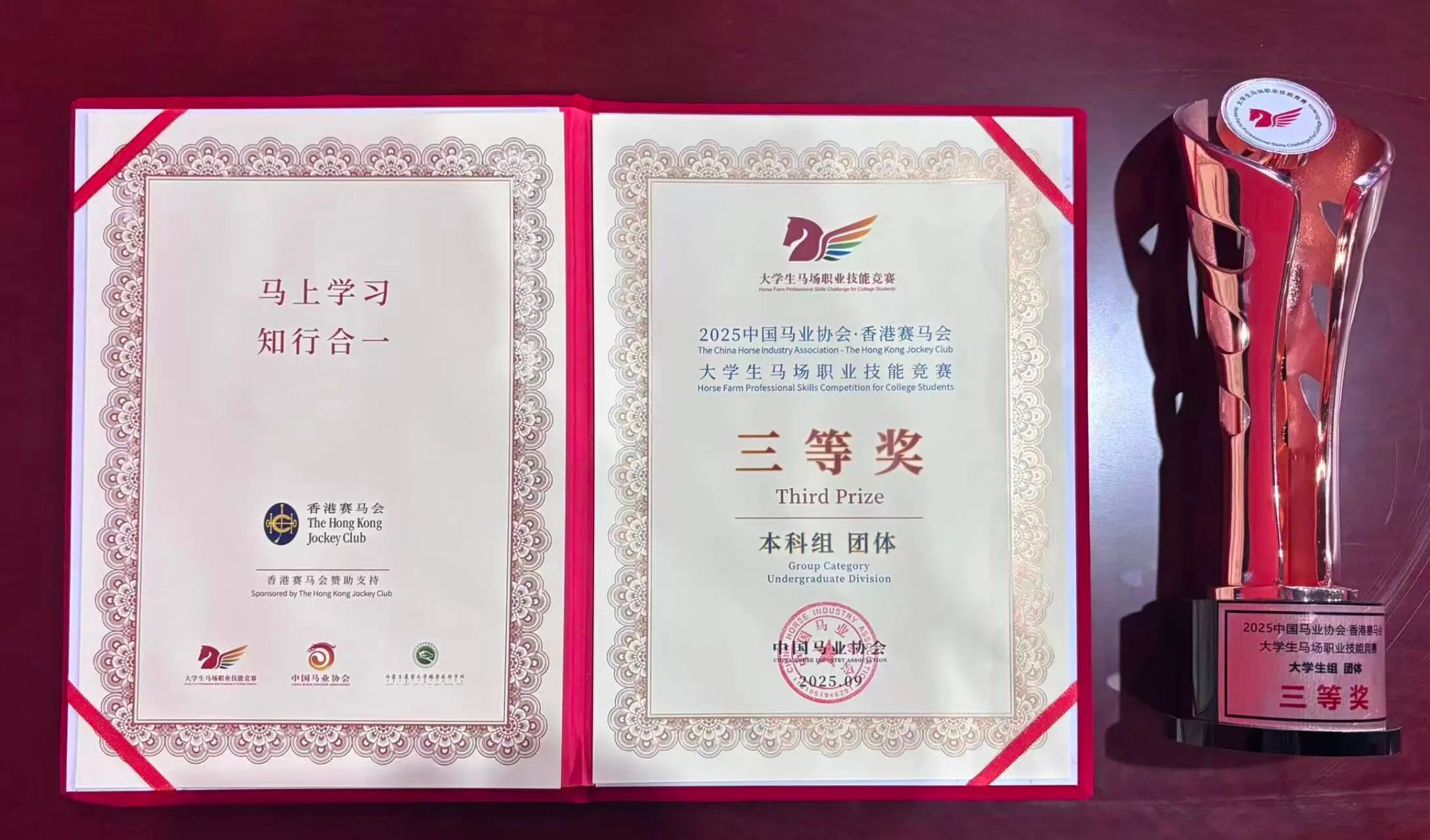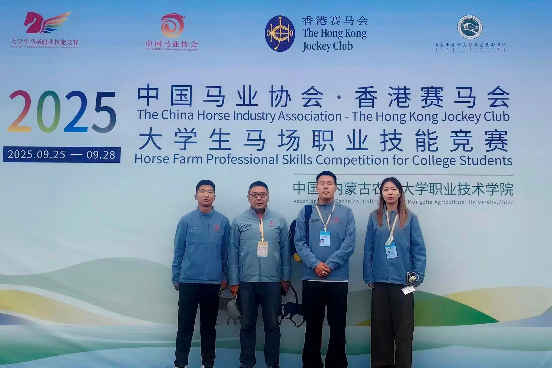 9月25日至9月28日,由中国马业协会主办的中国马业协会·香港赛马会·大学生马场职业技能竞赛,在内蒙古农业大学职业技术学院顺利举行。我院由党委副书记王阿荣、杜山老师、王永琴老师带领三名同学参赛。