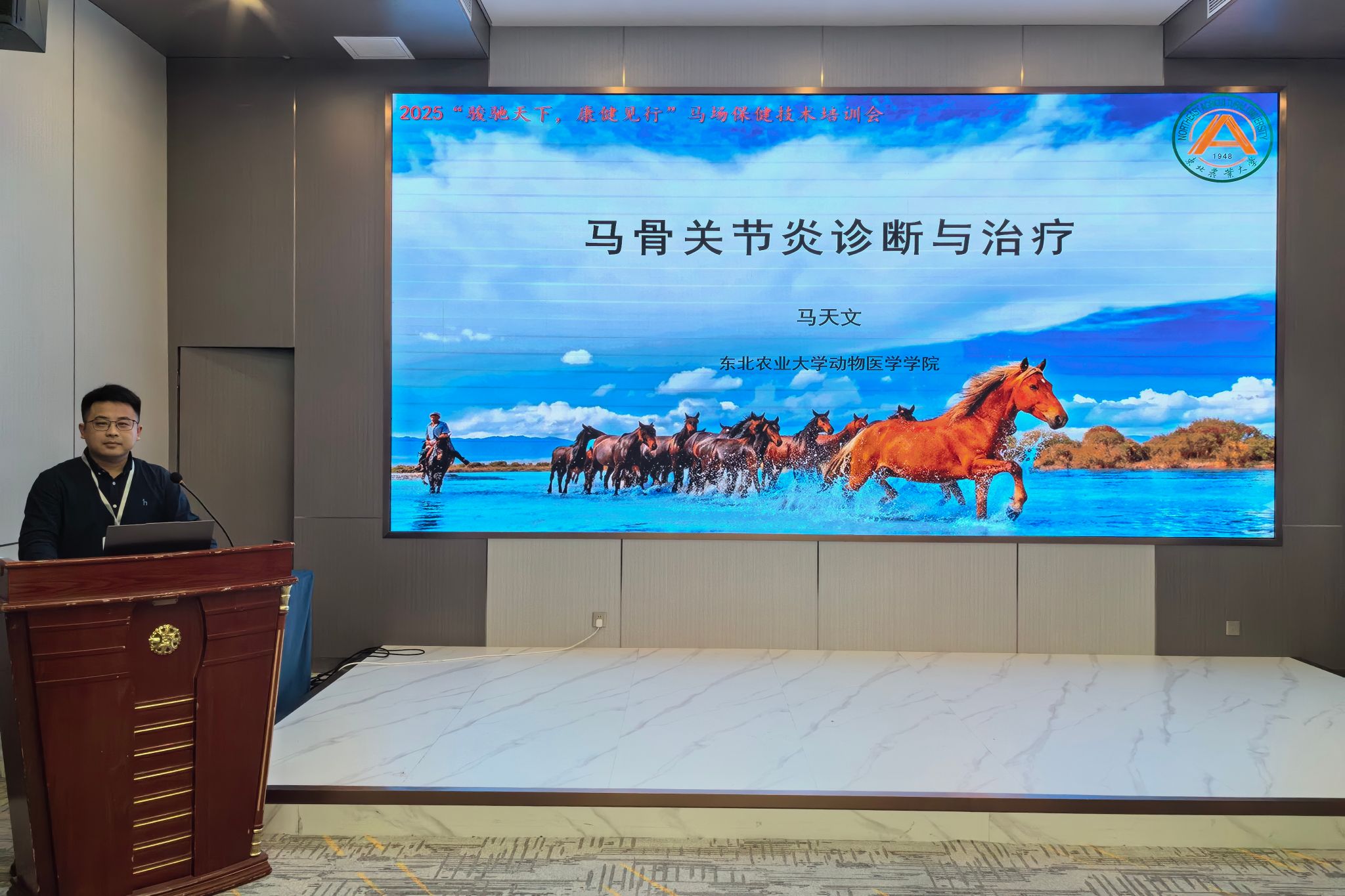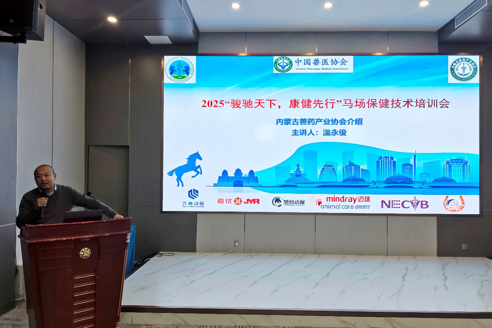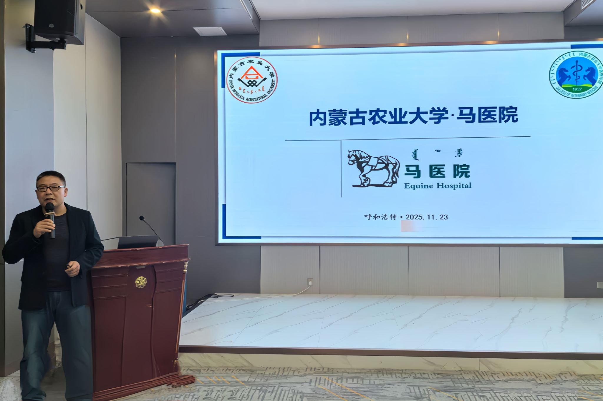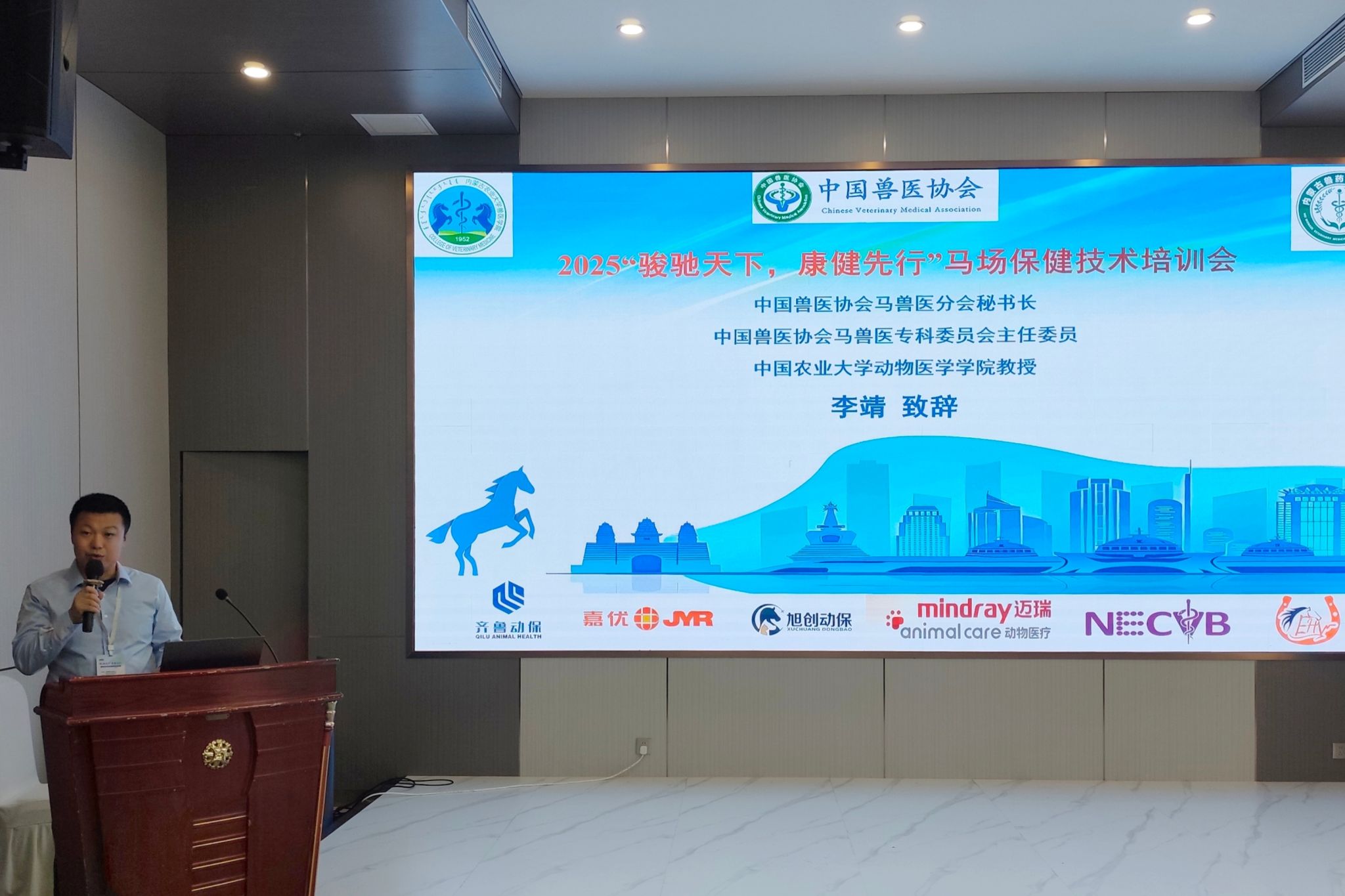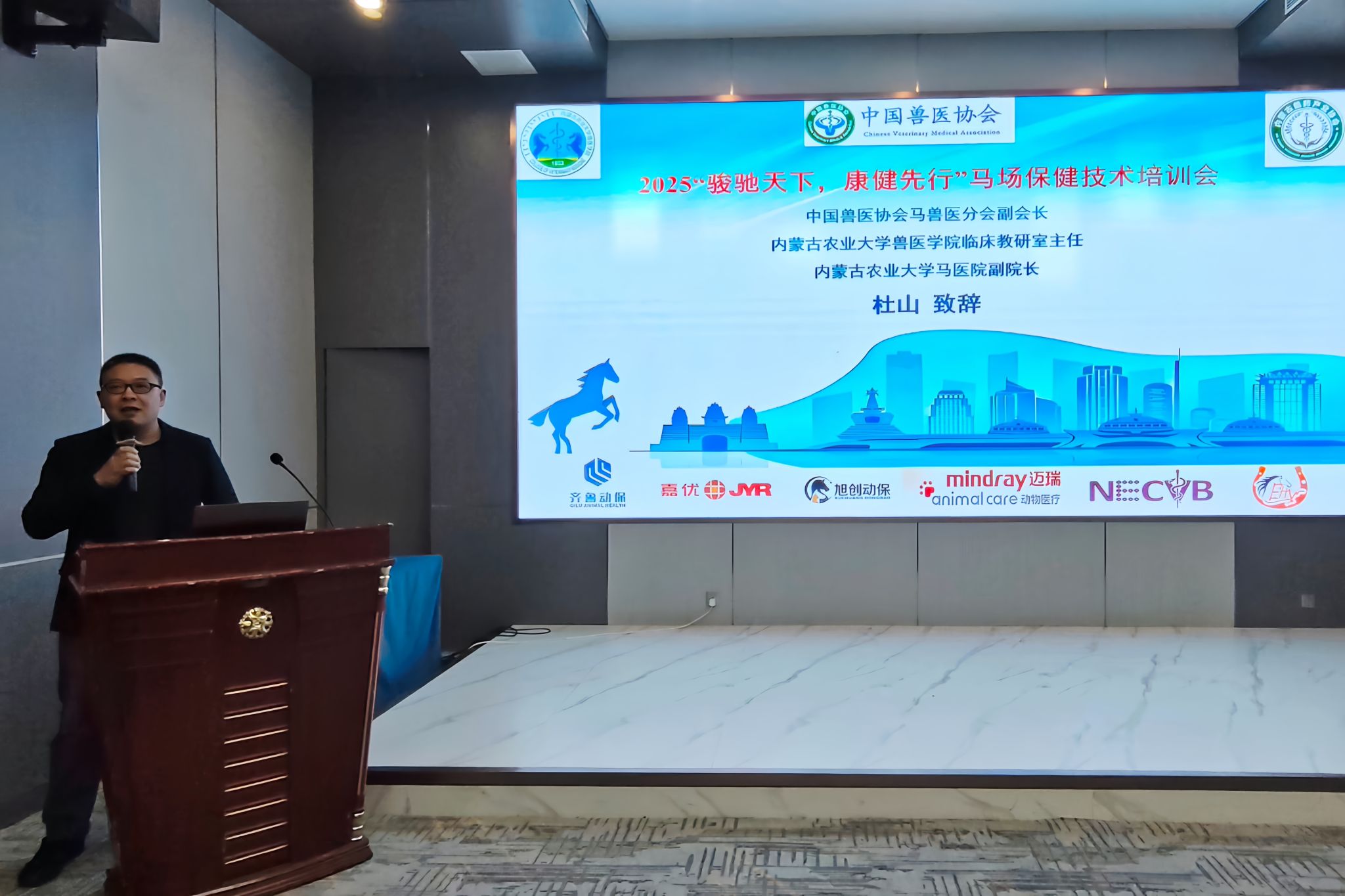 11月23日上午8:00,由中国兽医协会主办、内蒙古农业大学兽医学院承办的“骏驰天下,康健先行”马场保健技术培训会成功在呼和浩特市东蓬假日酒店举办。本次培训会汇聚了多位马兽医领域的专家学者及行业从业者,围绕马匹保健与疾病防控技术展开了深入交流与学习。