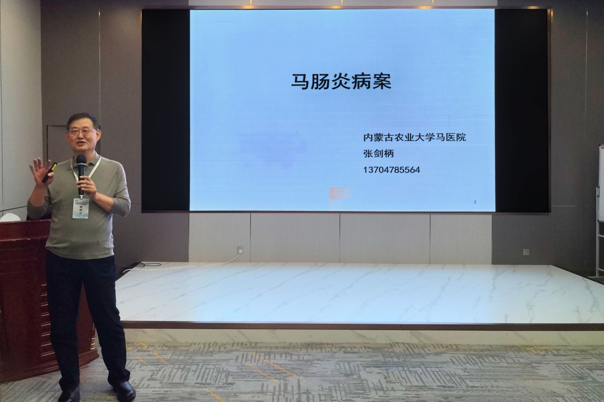 内蒙古农业大学兽医学院临床兽医学教研室张剑柄副教授针对马匹急性腹痛的诊疗进行阐述 兽医学院杨婧初 摄