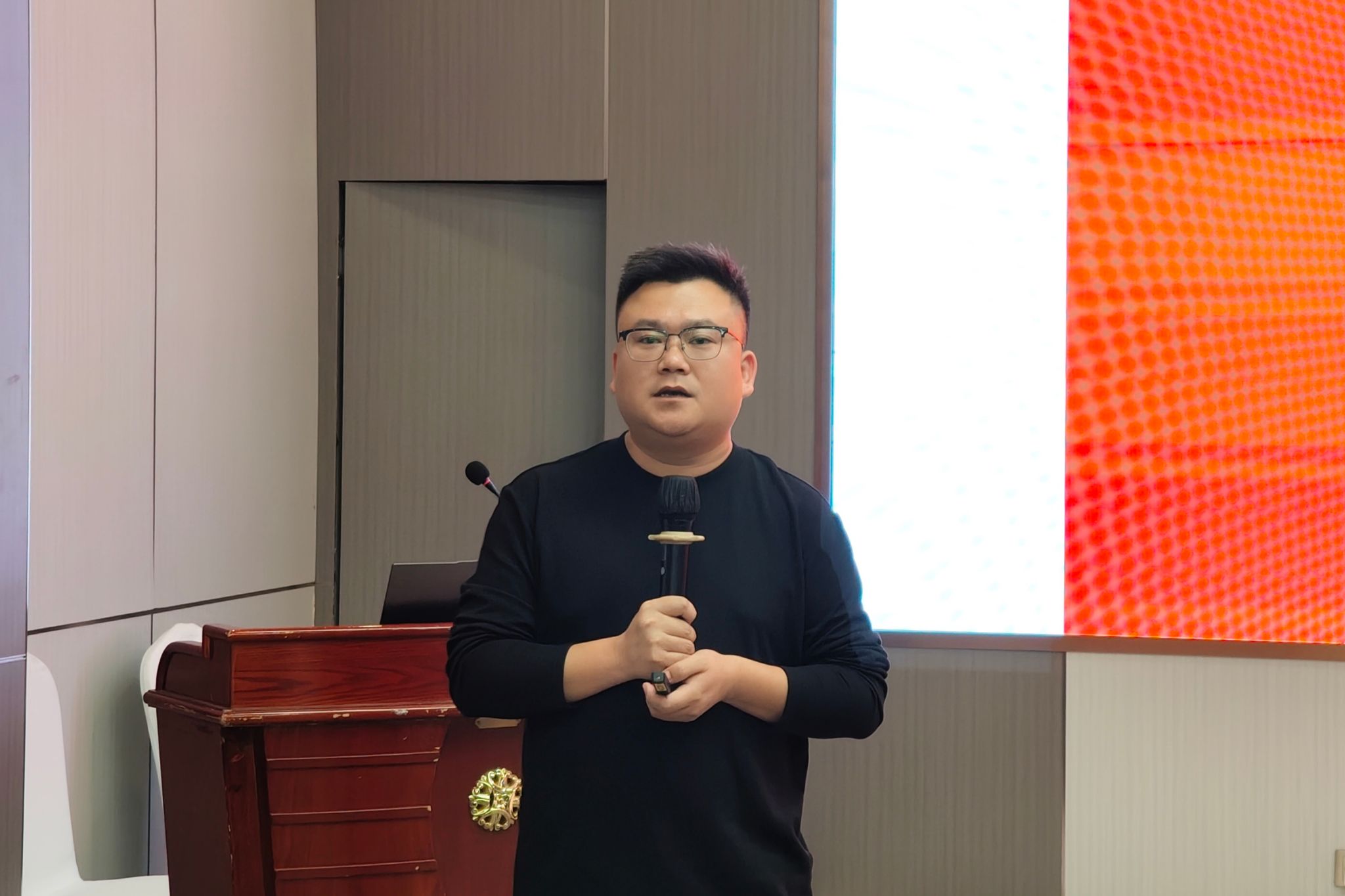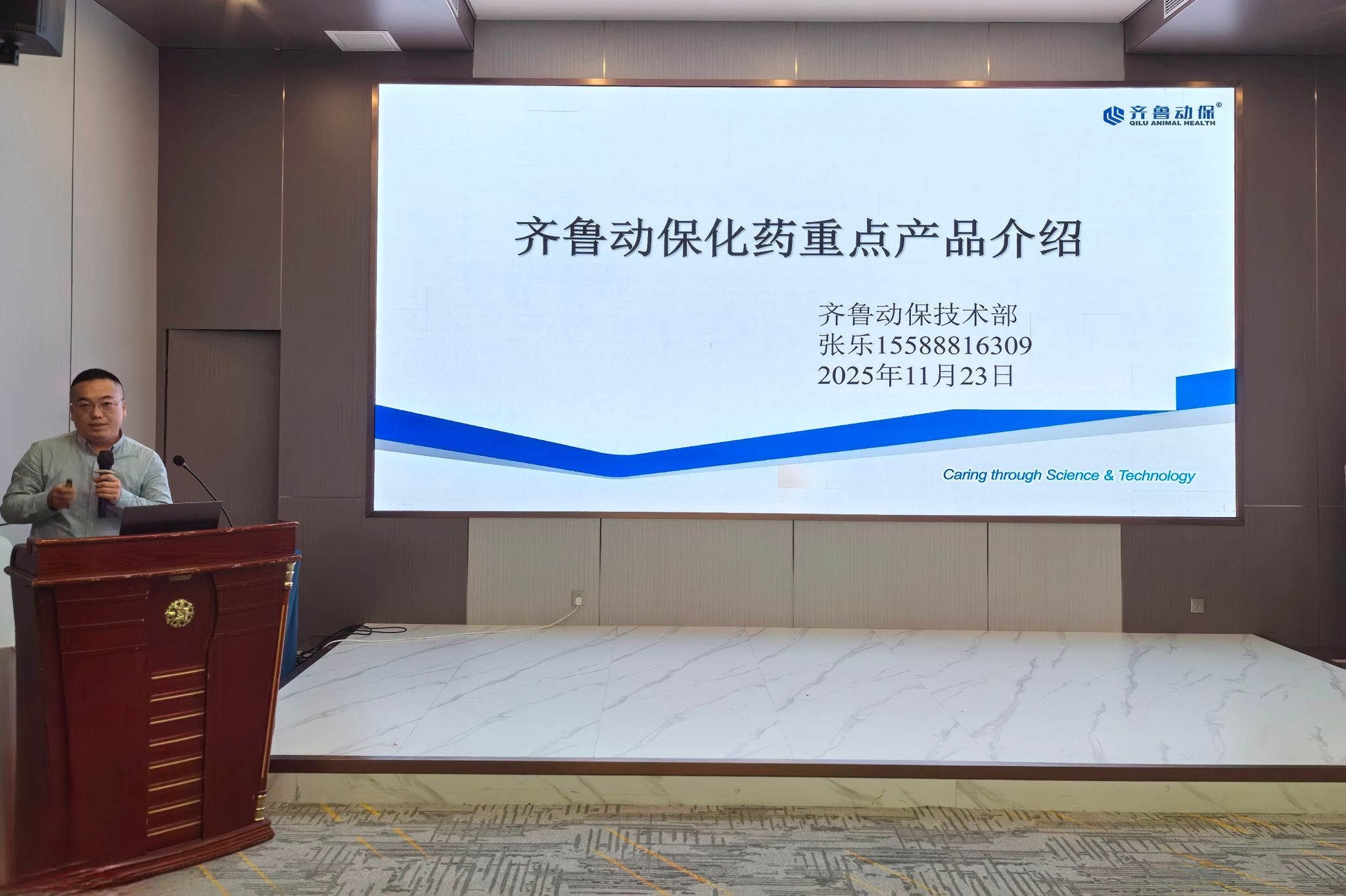齐鲁动保技术部张乐先生介绍重点产品 兽医学院沈芯羽 摄