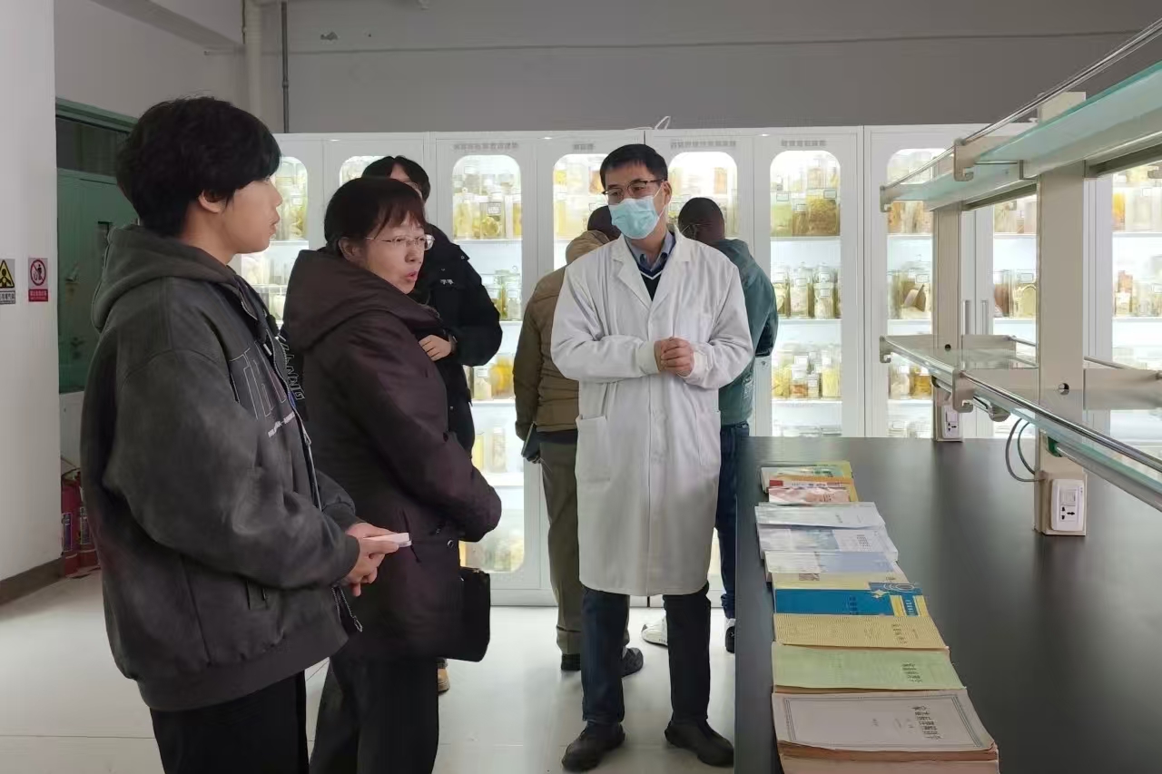兽医学院微生物学与寄生虫学教研室陆静老师带领学者们参观寄生虫标本室 兽医学院白婧菁 摄