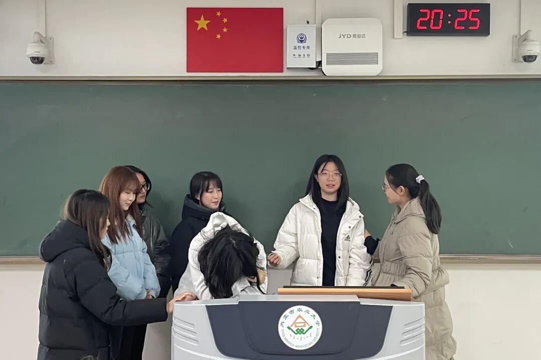 兽医学院辅导员郭锳洁老师和同学们共同进行情景模拟练习 兽医学院杨昊萱 摄
