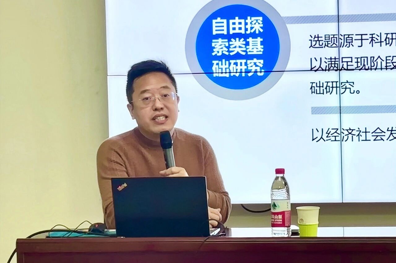 在专题报告环节,成子强教授首先结合自身多年经验,系统阐述了基金申报的总体逻辑与关键要点。他重点分析了科学问题属性分类评审导向下的应对策略,强调选题应立足学科前沿、体现特色优势;并就立项依据的撰写如何体现重要性、创新性与可行性,研究内容如何做到目标明确、层次清晰,技术路线如何实现合理可行等具体问题,进行了细致入微的讲解。