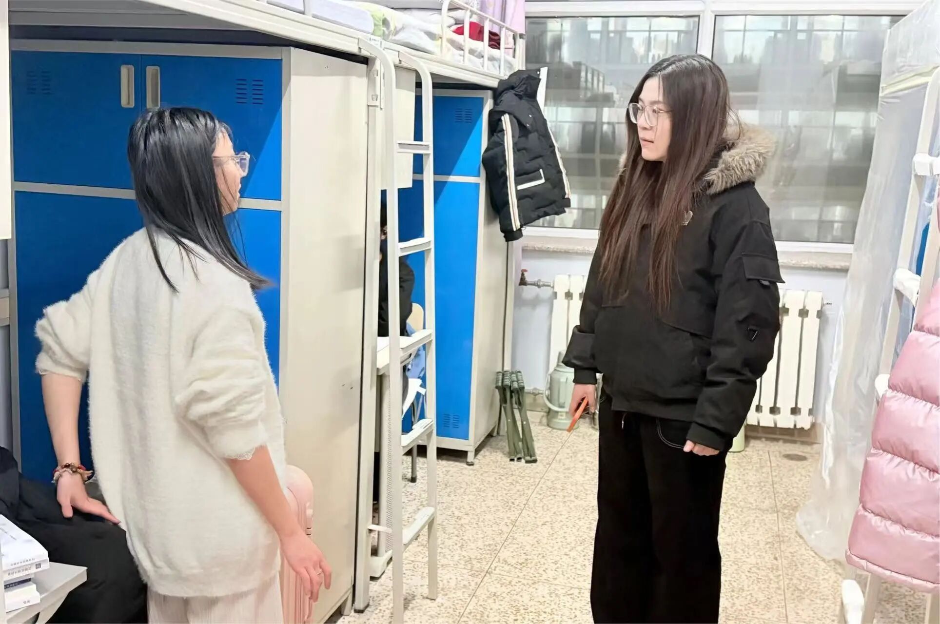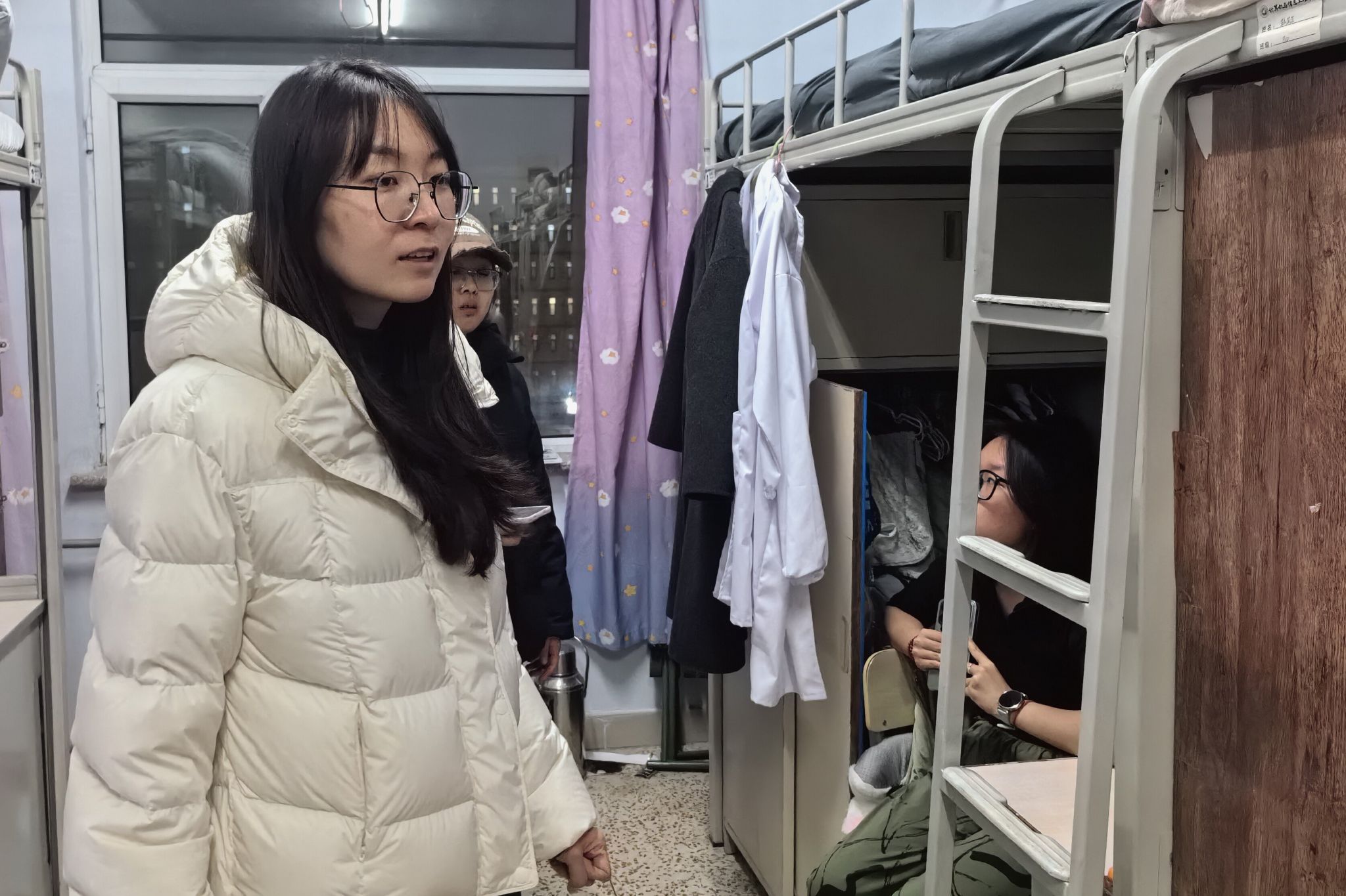 郑佳老师、王永琴老师和牛鑫老师检查宿舍 兽医学院沈芯羽 摄
