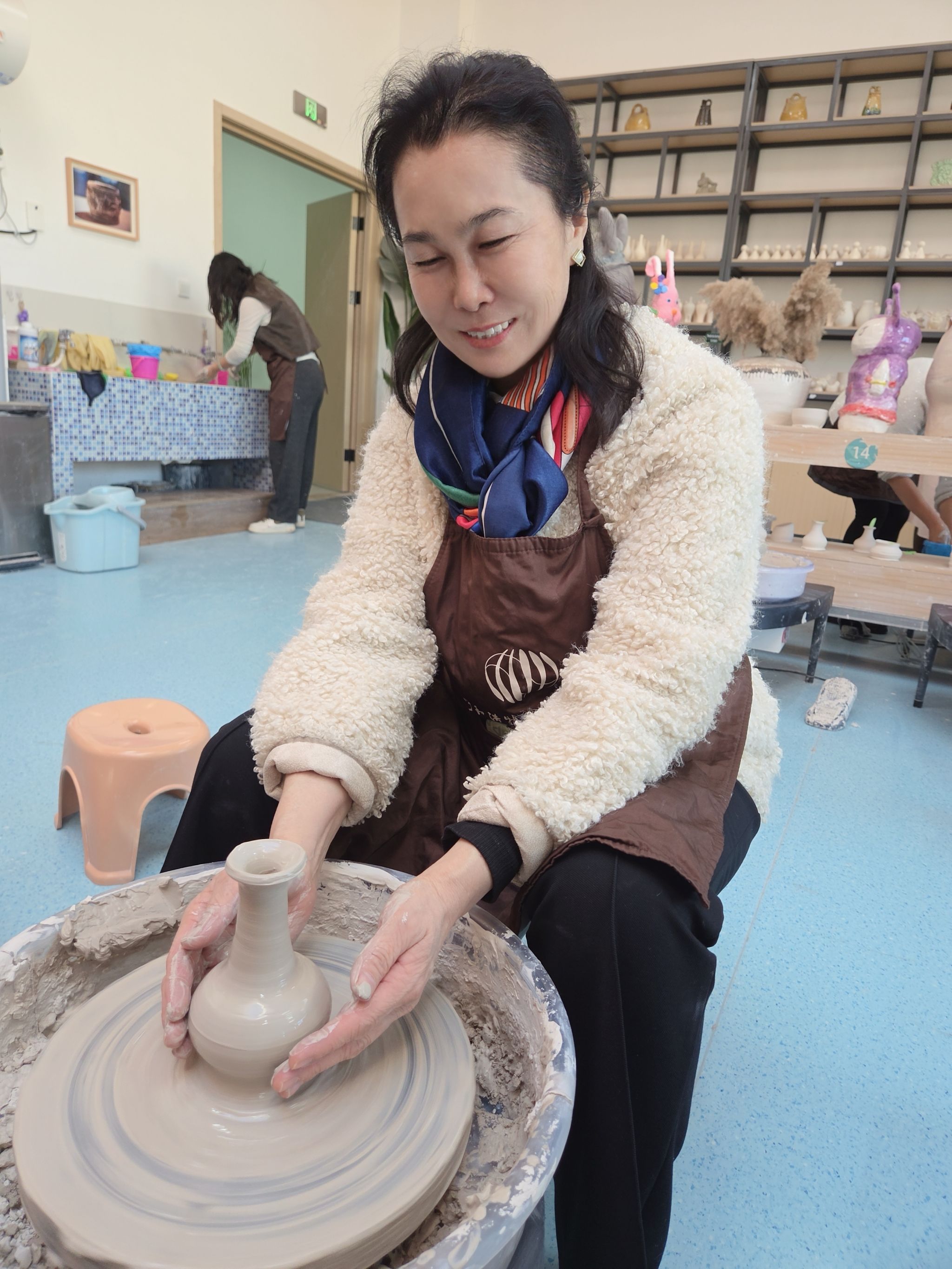 随后,老师们根据兴趣自主选择体验项目。陶艺拉坯区,大家在老师指导下亲手塑造碗盘杯瓶,体验泥土成型的奇妙;手工香皂DIY区,色彩斑斓的“水果”香皂在巧手中诞生,清新香气弥漫全场;羊毛毡画区,老师们以针为笔,将柔软羊毛化作个性画作,专注而治愈。三种体验各具特色,让平日里忙碌于讲台的老师们得以静心创作,享受手作乐趣。