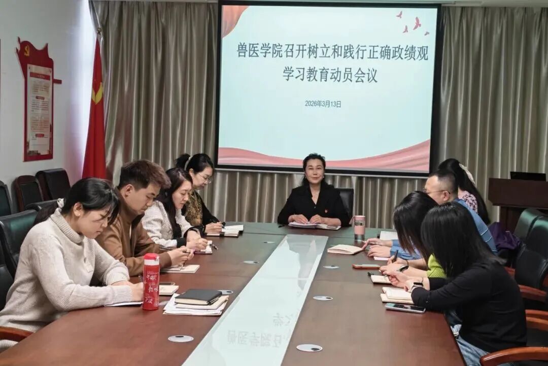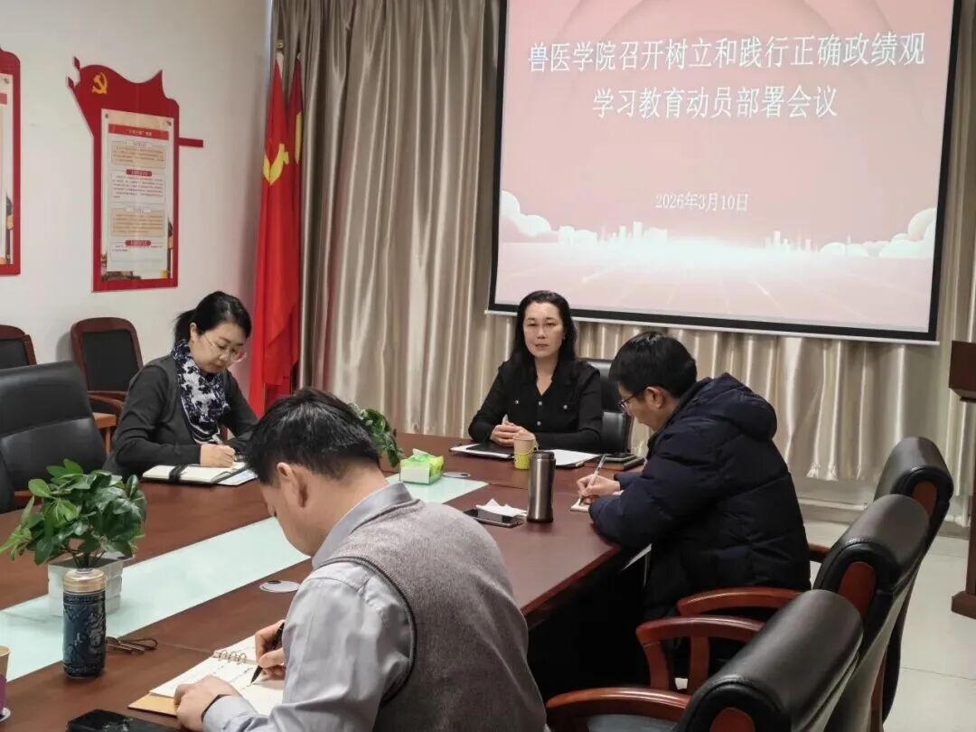 兽医学院分批次召开动员部署会,为学院深入开展树立和践行正确政绩观学习教育明确了方向、凝聚了共识。与会师生表示,将以此次学习教育为契机,立足自身,把树立和践行正确政绩观融入教学科研、人才培养和社会服务各项工作中,以务实作风和扎实业绩,为学院高质量发展贡献力量。